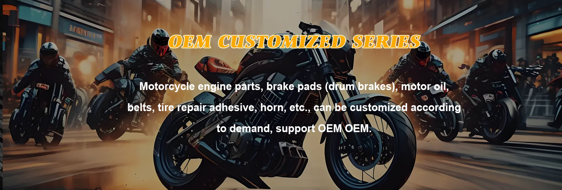 Motorcycle engine parts, brake pads (drum brakes), oil, belts, tire repair rubber, horn, etc., can be customized according to demand, support OEM.